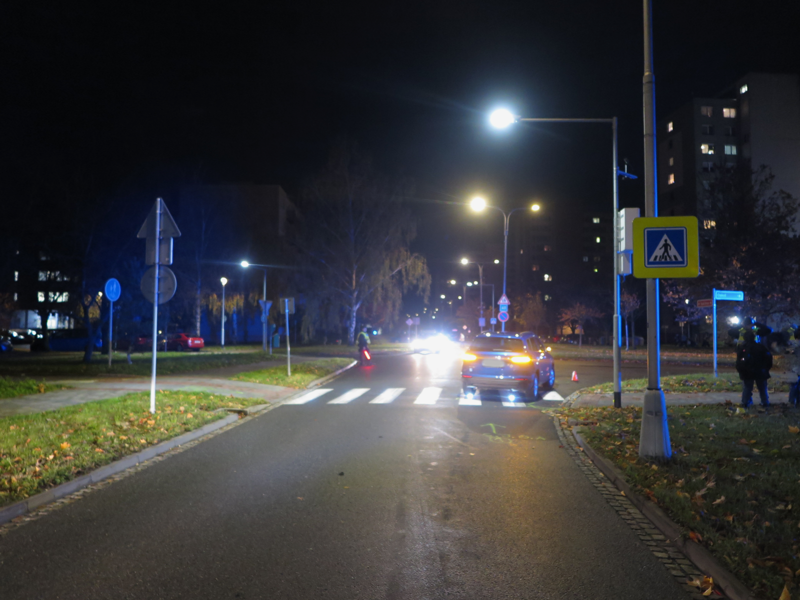 Dopravní policie v Kroměříži vyšetřuje nehodu, při které modré osobní auto narazilo do chodce. Událost se stala 3. listopadu 2025 těsně před sedmnáctou hodinou na přechodu pro chodce na ulici Spáčilova poblíž křižovatky s ulicí Oskol, nedaleko lávky.